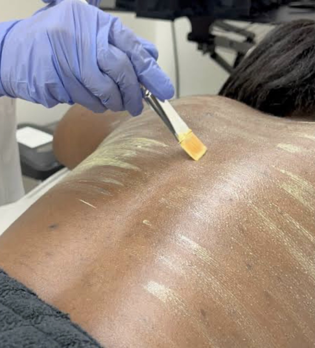 If you’re battling back acne, also known as “bacne,” you’ll be pleased to know that we offer the ideal treatment tailored for the back, shoulders, arms, and chest to effectively diminish breakouts. Bacne is increasingly recognized as one of the most prevalent skin concerns that The Perfect Peel, our premium medical-grade chemical peel, can safely and efficiently address. This medium-depth peel penetrates deeply into the skin layers, targeting acne from beneath the surface while simultaneously exfoliating the outermost layer to promote overall skin health.