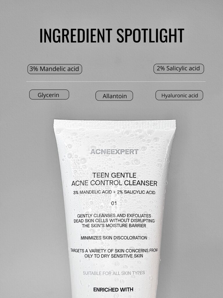 This is where thoughtfully formulated products earn their place. Acneexpertskin’s Teen Acne Control Cleanser isn’t positioned as a miracle, and that’s the point. With a balanced blend of Mandelic Acid (AHA) and Salicylic Acid (BHA), it gently clears pores and refines skin without stripping it or demanding a complicated routine.